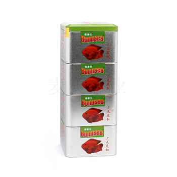 此款血鸚鵡飼料鐵盒包裝,是四層式的鐵盒包裝,正方形造型設計,蓋內縮口,鑼底結構。。為了順應多樣化的市場包裝需求,此款血鸚鵡飼料鐵盒包裝還可以制作成圓形、異形、長方形、心形等其他形狀的造型。
