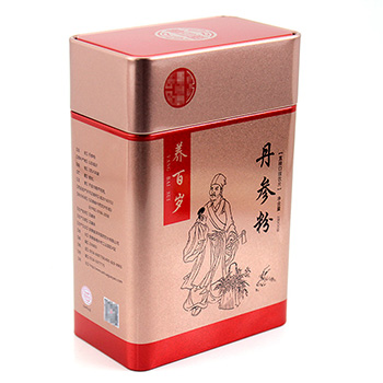 這款丹參粉長方形金屬鐵盒的尺寸為100*60*151mm,為了順應多樣化的市場包裝需求,此款保健品鐵盒可做成心形、正方形、橢圓形、車形、書本形等異形造型。