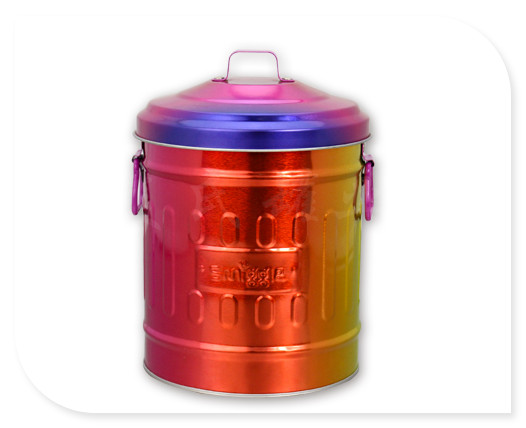 該款糖果金屬包裝盒為單面CMYK四色印刷處理,外過水性亮光油,內涂金油,過油目的不僅能提高鐵盒整體效果,還對鐵盒印刷面形成一層致密的保護膜,對鐵盒刮花、防銹起到一定的防護作用。除了過光油、金油外,客戶還可選擇過爆炸油、皺紋油、珠光油等