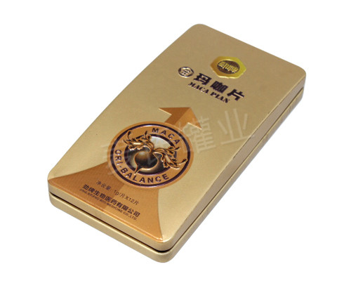 此款瑪咖粉復合片馬口鐵罐包裝產品,為平面膠印工藝處理,單面四色+一專色印刷,外過光油,內涂安全透明油,保證盒內的保健產品的衛生安全得以實現。鐵罐表面可進行浮雕、平雕、凹印、凸印等工藝處理??蓪a品LOGO以一種3D視覺化表現出來,還能夠更好的增加了鐵罐的整體觸摸感覺,加強品牌效應深入人心。
