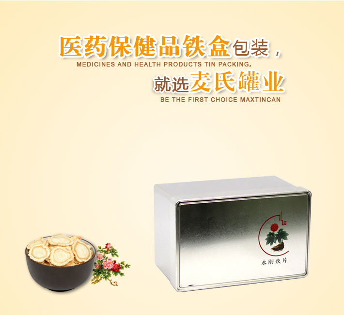 產品咨詢: 定做人參破壁飲片鐵盒,長方形三七粉馬口鐵盒,保健品鐵盒包裝廠
