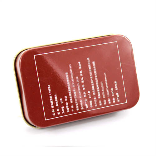 此款長方形馬口鐵茶葉鐵盒包裝為單面CMYK四色印刷處理,外過水性亮光油,內涂金油,過油目的不僅能提高鐵盒整體效果,具有強烈的金屬質感外,還對鐵盒印刷面形成一層致密的保護膜,對鐵罐刮花、防銹起到一定的防護作用。除了過光油、透明油外,客戶還可選擇過皺紋油、珠光油、爆炸油等。