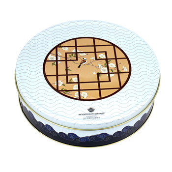 本款圓形食品包裝為單面CMYK四色印刷處理,外過水性亮光油,內涂透明油,過油目的不僅能提高鐵盒整體效果,具有強烈的金屬質感外,還對大鐵盒印刷面形成一層致密的保護膜,對大鐵盒刮花、防銹起到一定的防護作用。除了過光油、透明油外,客戶還可選擇過皺紋油、珠光油、爆炸油等。